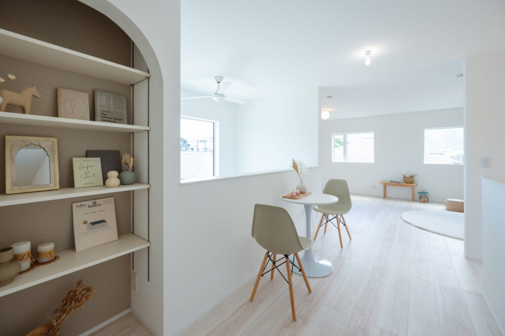 大きな吹き抜けからやわらかな光が降りそそぎ、家中どこにいても心地よい明るさに包まれます。